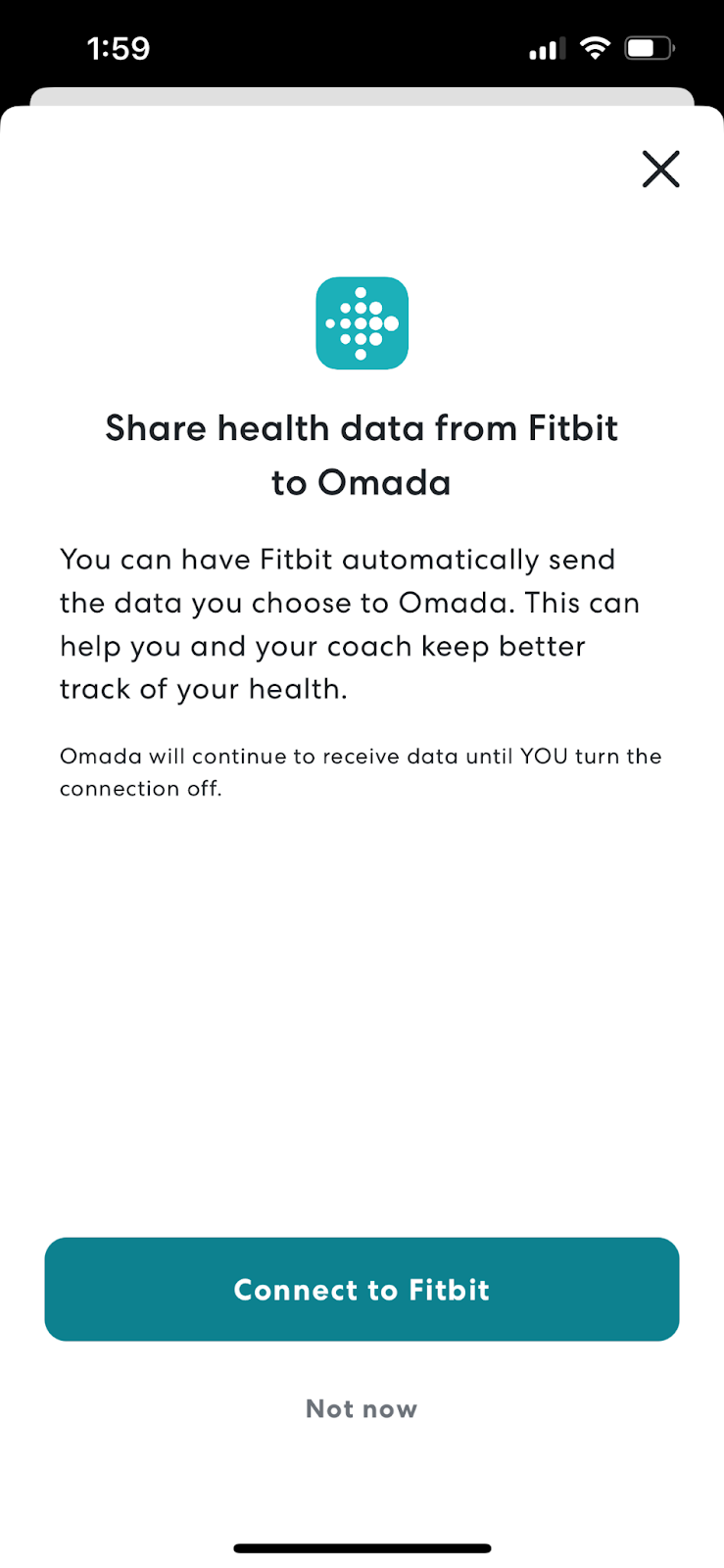 Note: Please allow 2 days for Fitbit to establish a connection and send your data to Omada.