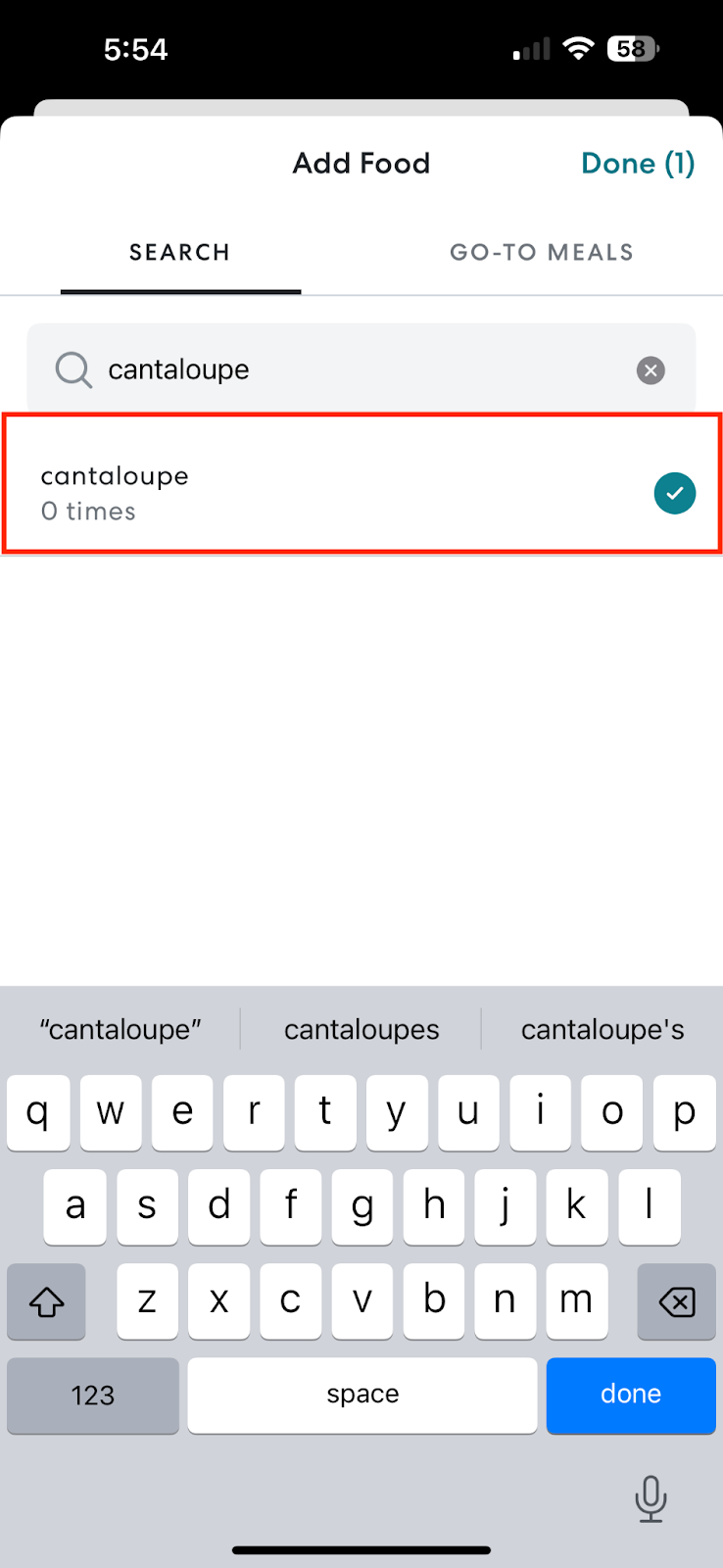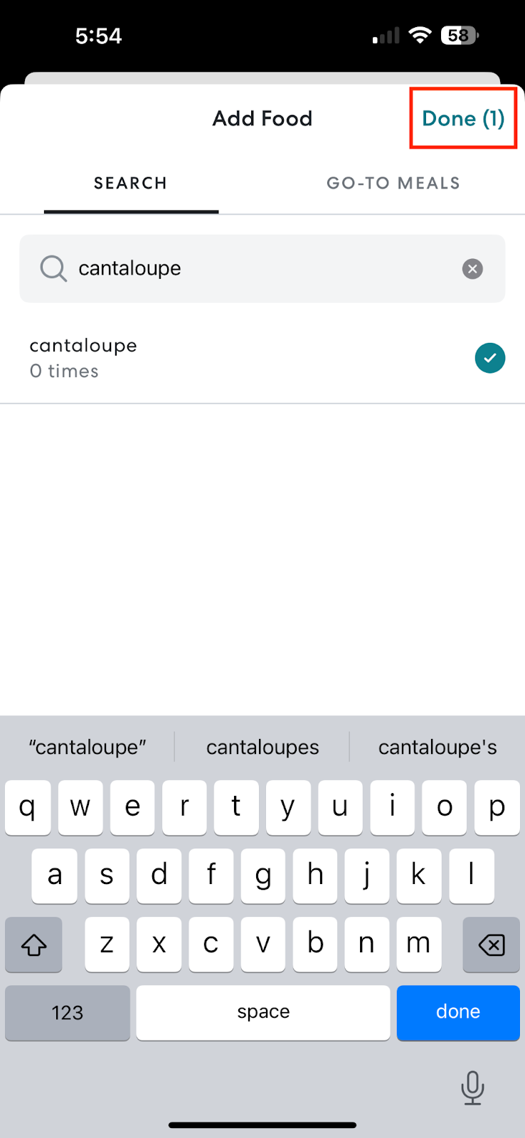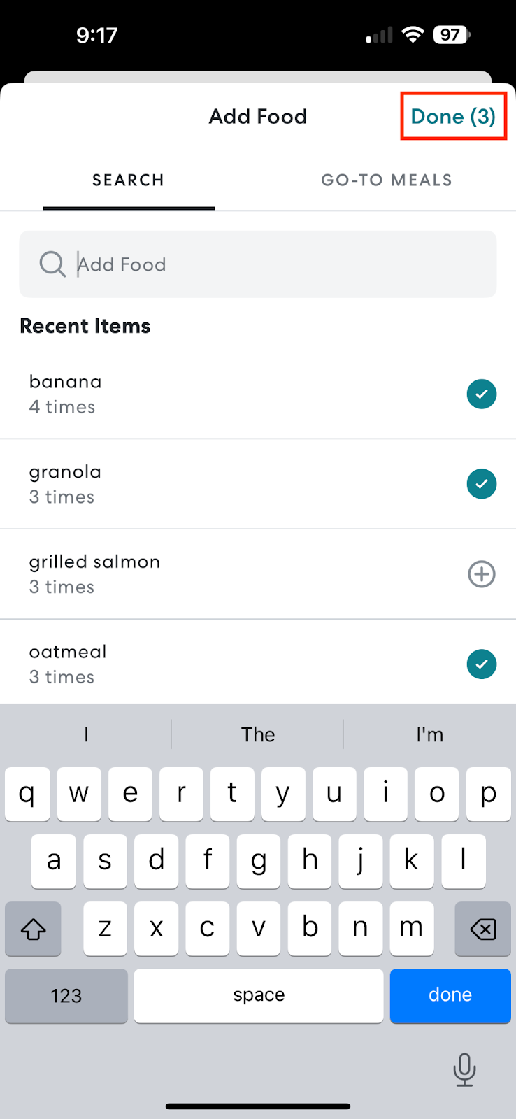 - Tap Done once you’re finished adding all of your desired meals.
