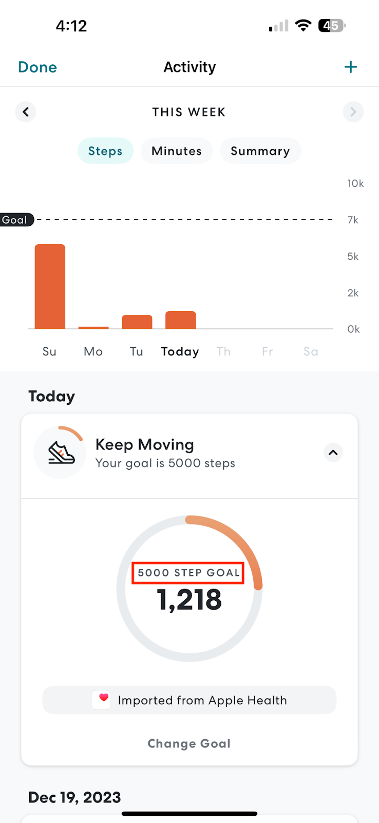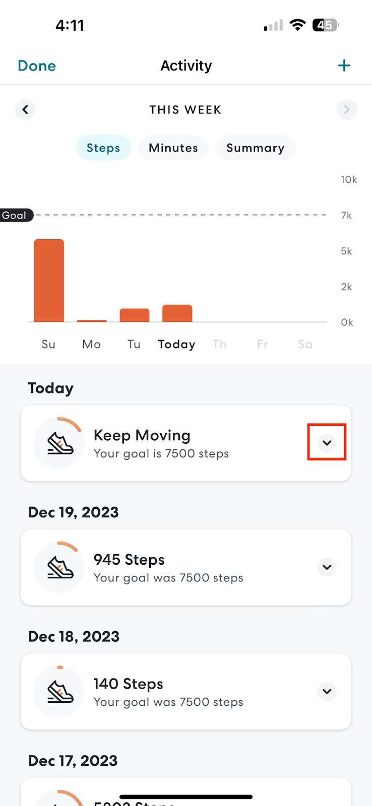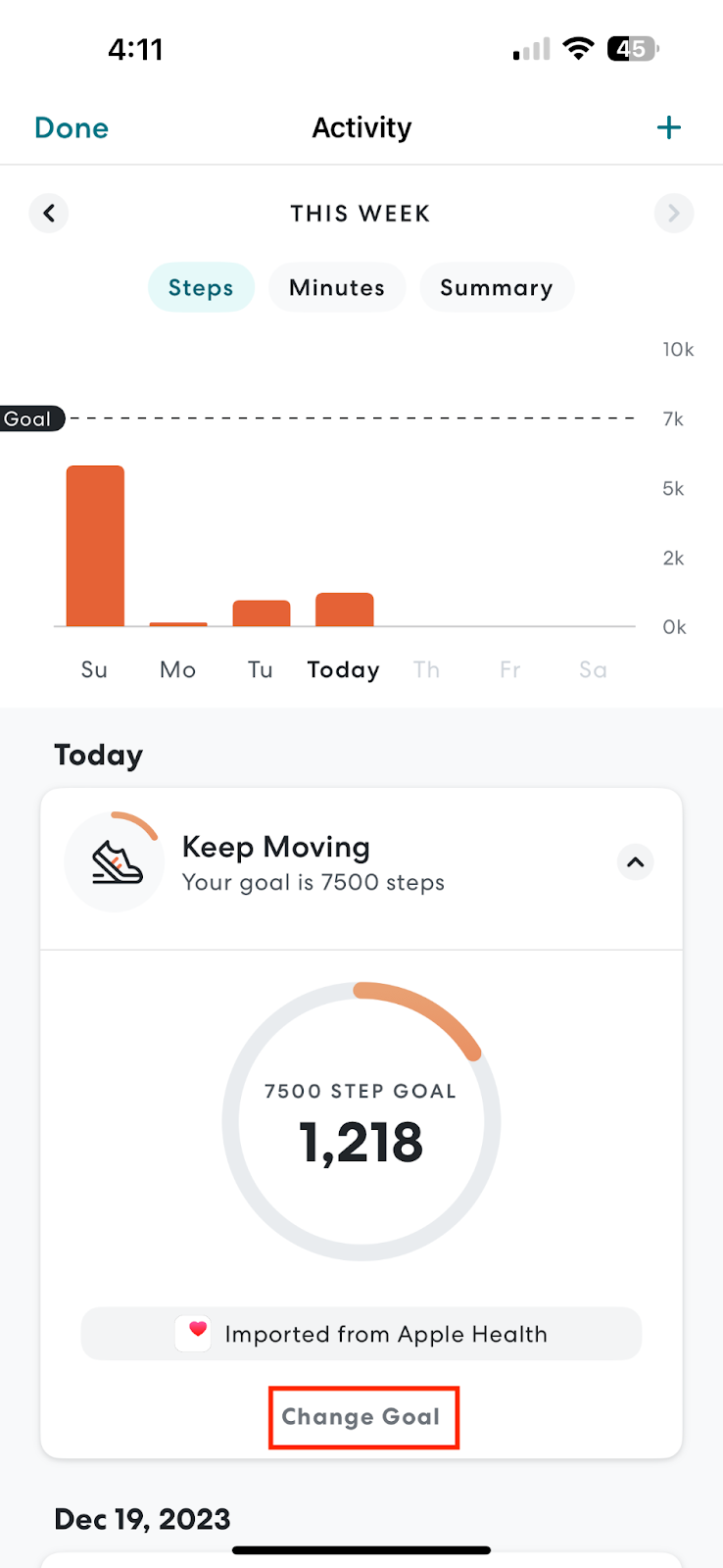 - Your step goal now should be set. You can always update your step goal again in the future.