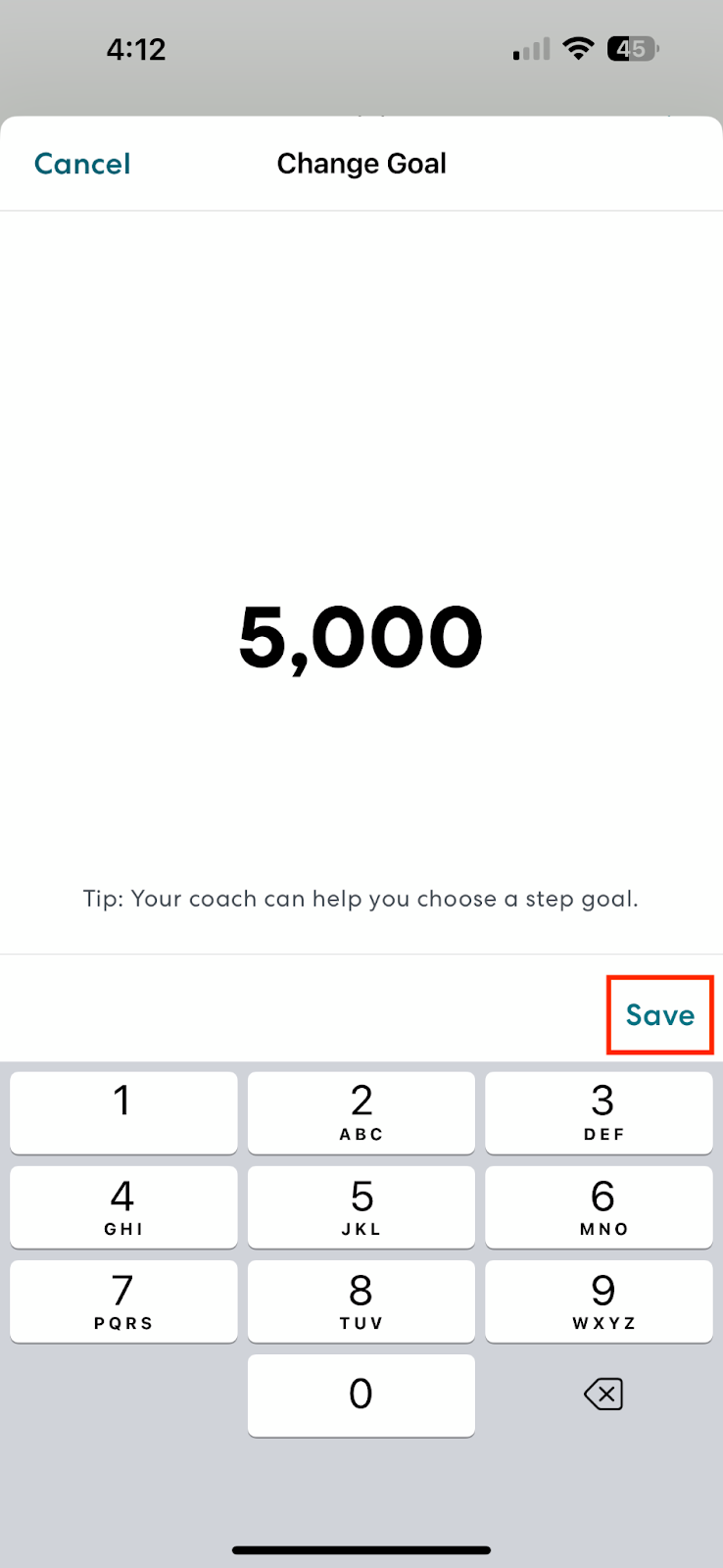 - Enter your step goal and tap Save.