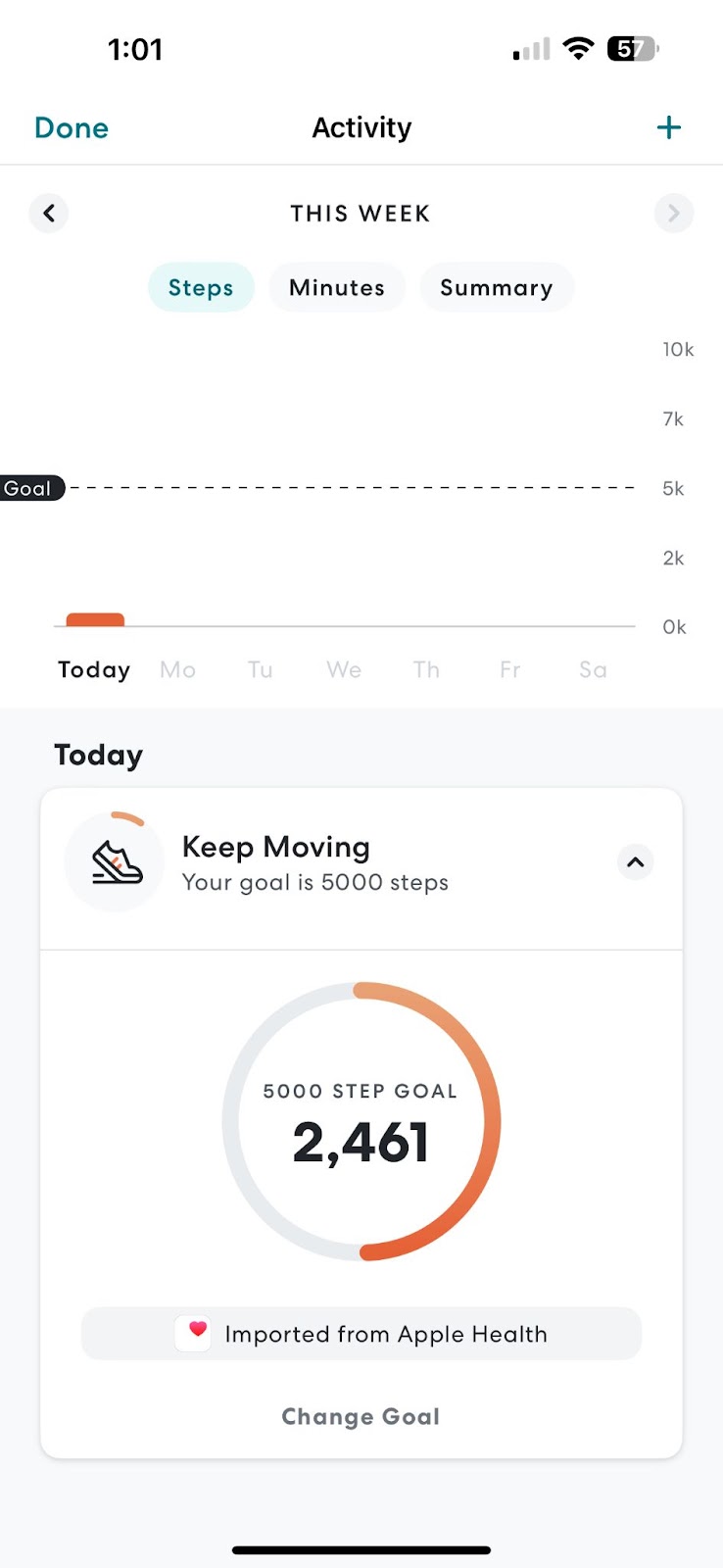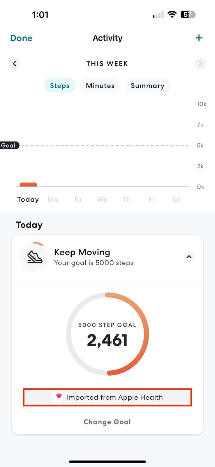- Once you've entered your steps in the Health app, navigate back to the Omada app. Your step count should now be updated.