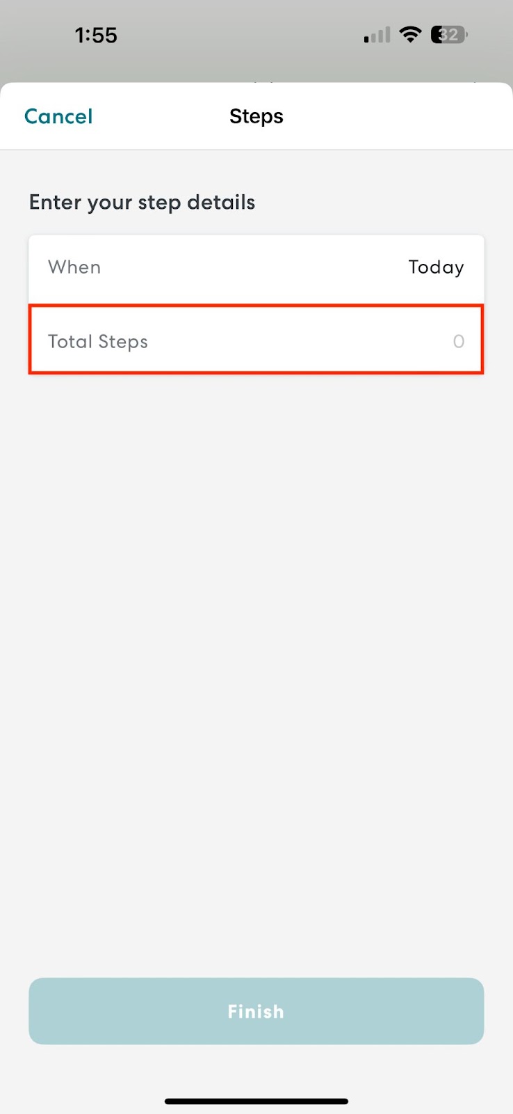 - Please note: If you have existing steps for the day, manually entering steps will add to the existing number of steps for the day. It will not update the overall total, but rather add to it.