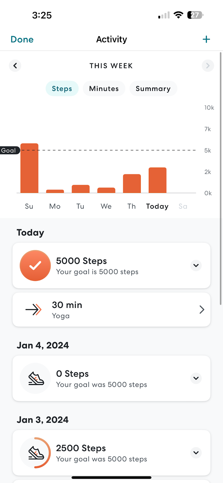 If your Health app is connected to your Omada account and you would like to update your steps, click here.